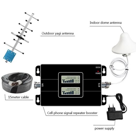 – Se conecta por medio del cable coaxial a la antena donadora (externa) y la antena de servicio (interna), la antena del donador se coloca fuera del edificio donde tiene fácil acceso a la señal BTS, Y la antena de servicio se coloca en el edificio donde puede extender la cobertura de radio a la zona ciega.