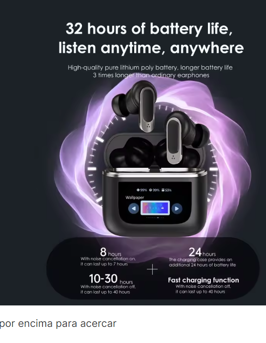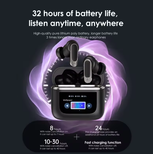 - En la pantalla puedes: Cambiar de Fondo/ Graduar el Volumen/ Temporizador/Buscar Audífonos/ Ecualizador/ Activar los Modos ENC/ANC - Botones Táctiles