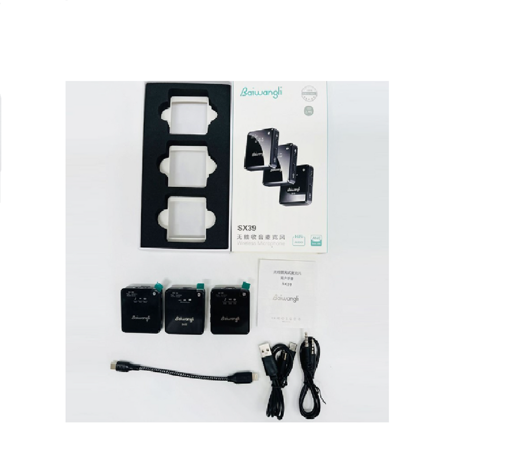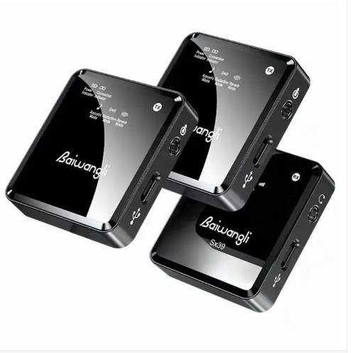Baiwangli SX39 Mic Lavalier Para Iphone Live Broadcast Reducción de Ruido Micrófono Inalámbrico, 2 Transmisor + 1 Receptor equipado con salidas digitales y analógicas, compatibles con iphone y versátil con una interfaz de 3.5 mm reducción automática de ruido, reverberación, monitoreo, reproducción externa y funciones de silencio emparejamiento inalámbrico, conexión automática al inicio y una operación fácil compatible con varios dispositivos, como teléfonos inteligentes, computadoras, tabletas, altavoces, amplificadores, cámaras, etc.