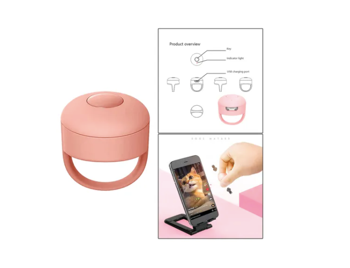 mucho tiempo Visualización de videos por largo tiempo, dolor de cuello, dolor de dedos, este dispositivo de anillo de control remoto solo necesita presionar el botón para eliminar el dolor. mientras está ocupado, deslizar mientras duerme durante el almuerzo y otras posturas para deslizar videos sin sentirse cansado.