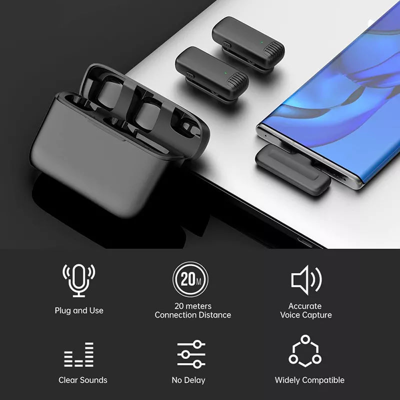 - 2 x J13 2.4G micrófonos inalámbricos Lavalier Clip-On para Tipo C o iphone