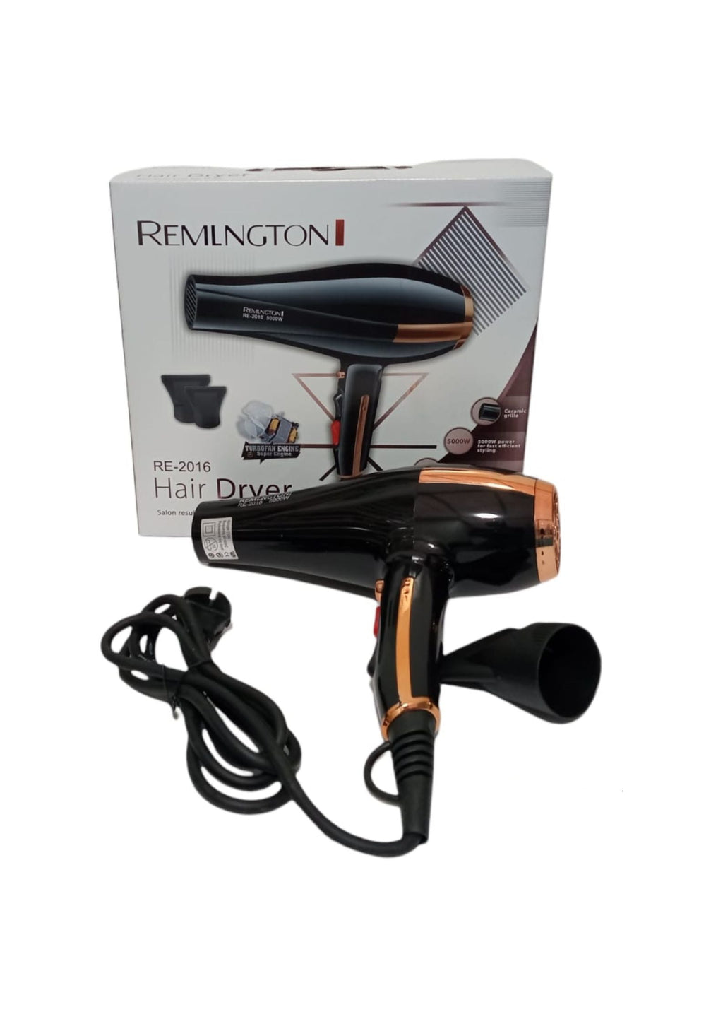 El nuevo Secador tiene una potencia de 5000w para proteger la elasticidad del cabello, conservando la humedad natural del mismo y permitiendo obtener resultados muy pulidos. Por otro lado, su motor de alta calidad no se calienta durante el uso del secador, aumentando su efectividad y longevidad de tu cabello.Resultados de salón de belleza todo el día, todos los días.Secador Remlngton Hair Dryer RE-2016 / 5000 W De PotenciaTemperatura constante de 60 °Cool Gear: ajuste y estilo duraderoEl viento suave de la salud ayuda a hidratar la penetración de la humedad del cabello en el interior del cabello.Contenido del empaque:1x Secador Remlngton Hair Dryer2x Boquillas1x Manual De Manual