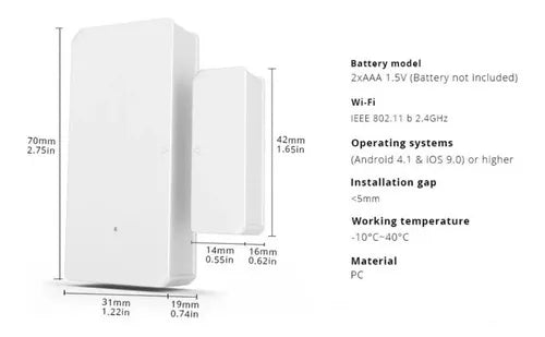 Descripción: Mantén el enlace con los dispositivos inteligentes SONOFF para crear varias situaciones inteligentes Enciende/apaga la luz con una acción Notifícalo cuando la puerta/ventana esté abierta Verifique el estado de apertura y cierre de la puerta/ventana en la aplicación Pantalla a nivel de batería y recordatorio de batería baja Permite compartir el sensor con tu familia para monitorizar y controlar tu hogar No gateway requiere Emparejamiento de bajo consumo Bluetooth Compatible para comprobar el registro de historial en la aplicación Transmisión Wi-Fi de baja potencia para un tiempo de trabajo más duradero Instalación fácil de pelar y pegar, fácil de usar